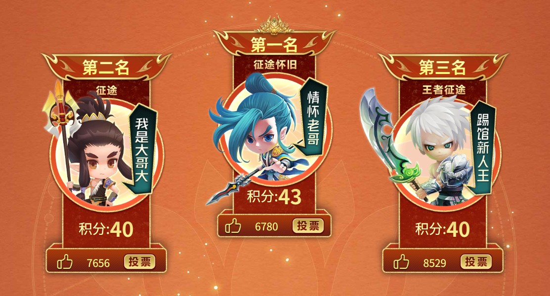 《征途怀旧版》凭借南京站“冲星一哥”积9分,总积分43分一举登顶,从第三名直冲榜首!
