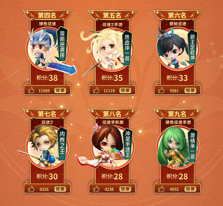 背水一战之时,正是英雄诞生之际!《原始征途》(33分)、《征途2》端游(30分)、《征途手机版》(28分)、《绿色征途手游》(28分)最终站若能冲击前列,依然能够证明实力,赢得荣耀时刻!