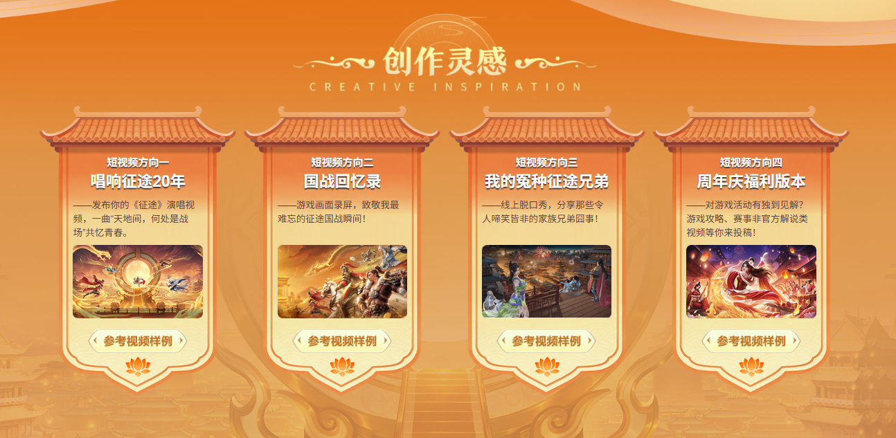 我们为你配备了强大的后援——四大创作方向任你发挥,参考视频样例轻松复刻。更提供征途视频/图片素材、AI视频创作教学辅助创作,助你轻松跨越技术门槛,将灵感化为爆款作品,成为征途社区瞩目的视频之星!