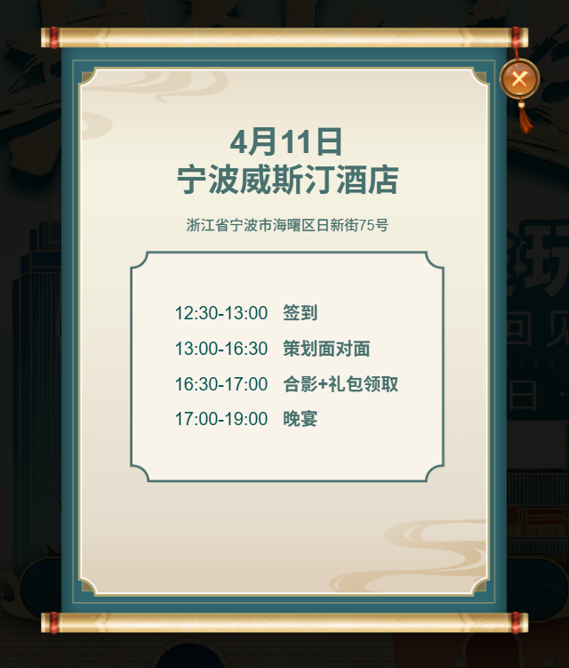见面会地点:宁波威斯汀酒店(浙江省宁波市海曙区日新街75号)