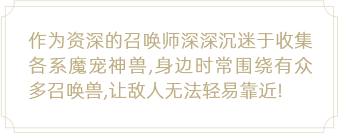 天神召唤的召唤兽均为天神,其对某些属性的敌人有克制作用,增益状态技能特别加强。